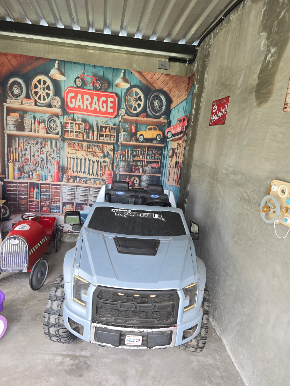 Garage y Circuito Vial: lavado de autos, herramientas reales, gasolinera y recorrido en autos y triciclos.